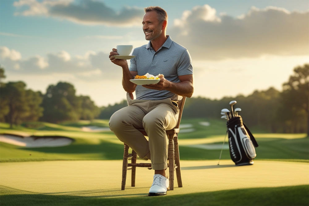 Och vad händer på golfbanan? Jo, det är lätt att det slinker ner både energibars, korv med bröd och dryck. På så sätt kan man faktiskt gå upp i vikt under en rond om man inte är vaksam.