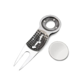 Den här modellen kombinerar en klassisk, robust metal-greenlagare med en inbyggd flasköppnare – en liten extra funktion som kan vara oväntat praktisk efter rundan. Själva greenlagaren gör jobbet med att laga nedslagsmärken på greenen på ett enkelt och effektivt sätt, och metallmaterialet ger känslan av kvalitet och hållbarhet.