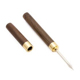 Den här groovevässaren skiljer sig från många andra modeller genom sin design med träfodral. När verktyget är hopskruvat ser det nästan ut som en penna, vilket gör att den både skyddas och blir smidig att bära med sig i golfbagen utan att spetsen ligger framme.