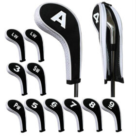 Detta set med headcovers ger ett komplett skydd till hela järnuppsättningen. I paketet ingår tio individuella headcovers som täcker järn 3–9 samt A-, PW- och SW-klubbor, vilket gör att hela setet kan skyddas på ett enhetligt sätt.