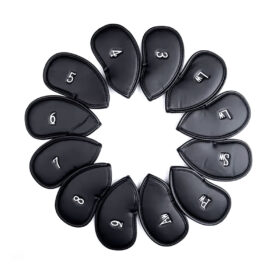Detta set med headcovers till järnklubbor är en mer stilren variant där fokus ligger på både skydd och utseende. Headcoversen är tillverkade i konstläder, vilket ger en fastare känsla och ett mer klassiskt uttryck jämfört med mjukare neoprenmodeller, samtidigt som klubborna skyddas mot repor och slag i bagen.