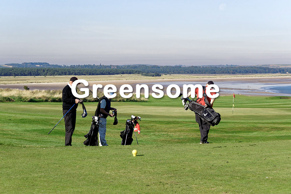 Greensome fungerar lite annorlunda då bägge spelare slår vart sitt utslag och man sedan efter det väljer den bollen som det ska spelas vidare på. Efter detta gäller det i fortsättningen att vartannat slag slås tills dessa att bollen är i hål. Skulle pliktslag ådras påverkar inte detta slagordningen.