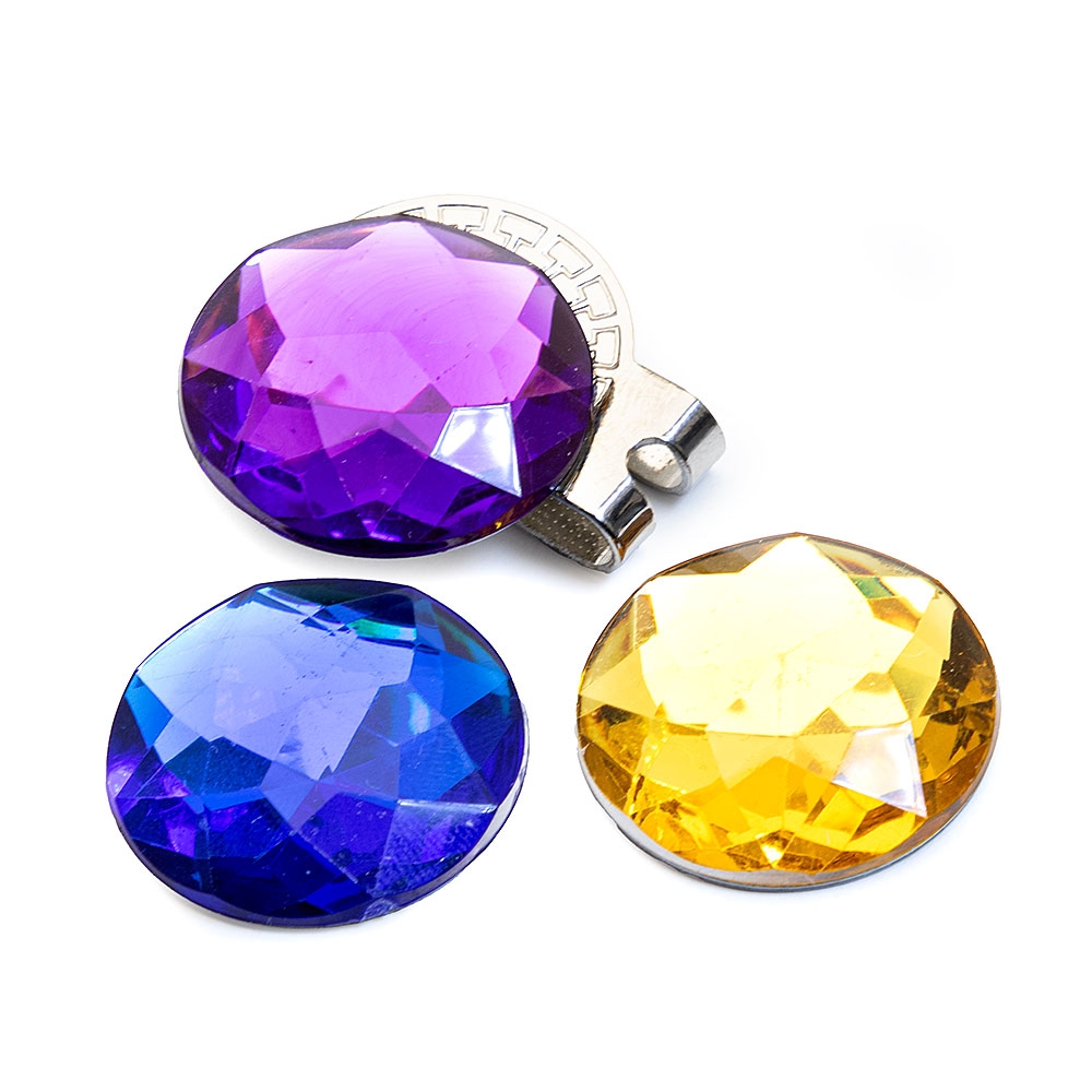 I detta paket ingår det 3 st markeringsknappar som ser ut som kristaller, nej föga överraskande är det inte några äkta ädelstenar. Men färggladda är de iaf och du får en lila, gul och blå.