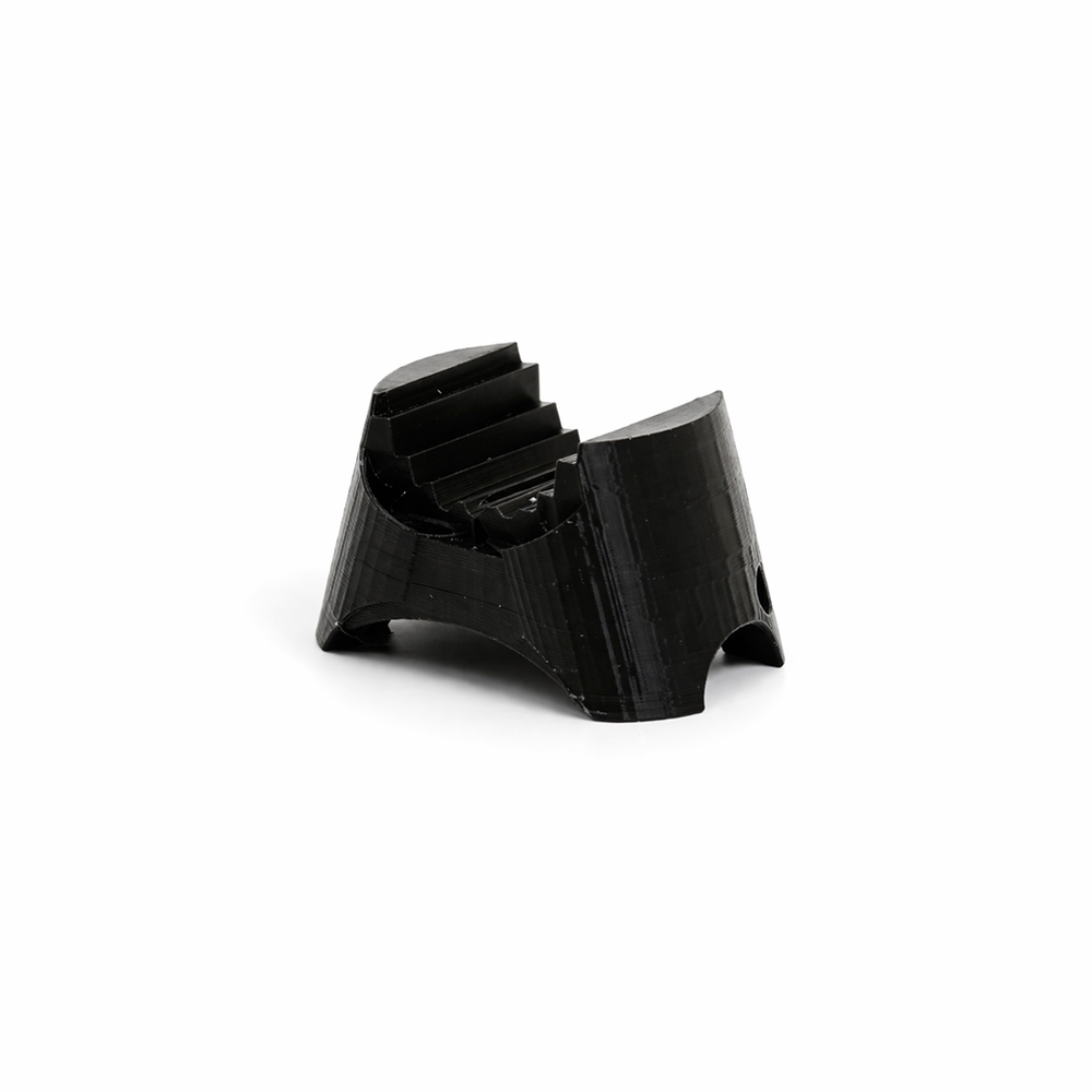 Produkten är 3D-printad och har en kompakt design som gör den enkel att ha i fickan eller i bagen. Den väger cirka 10 gram och mäter ungefär 4,5 cm i bredd, vilket gör den lätt att ta med utan att ta upp plats. Den har även ett litet hål där du kan fästa ett snöre eller en karbin om du vill ha den lättillgänglig under rundan, eller har du den helt enkelt i fickan där den får plats utan problem.